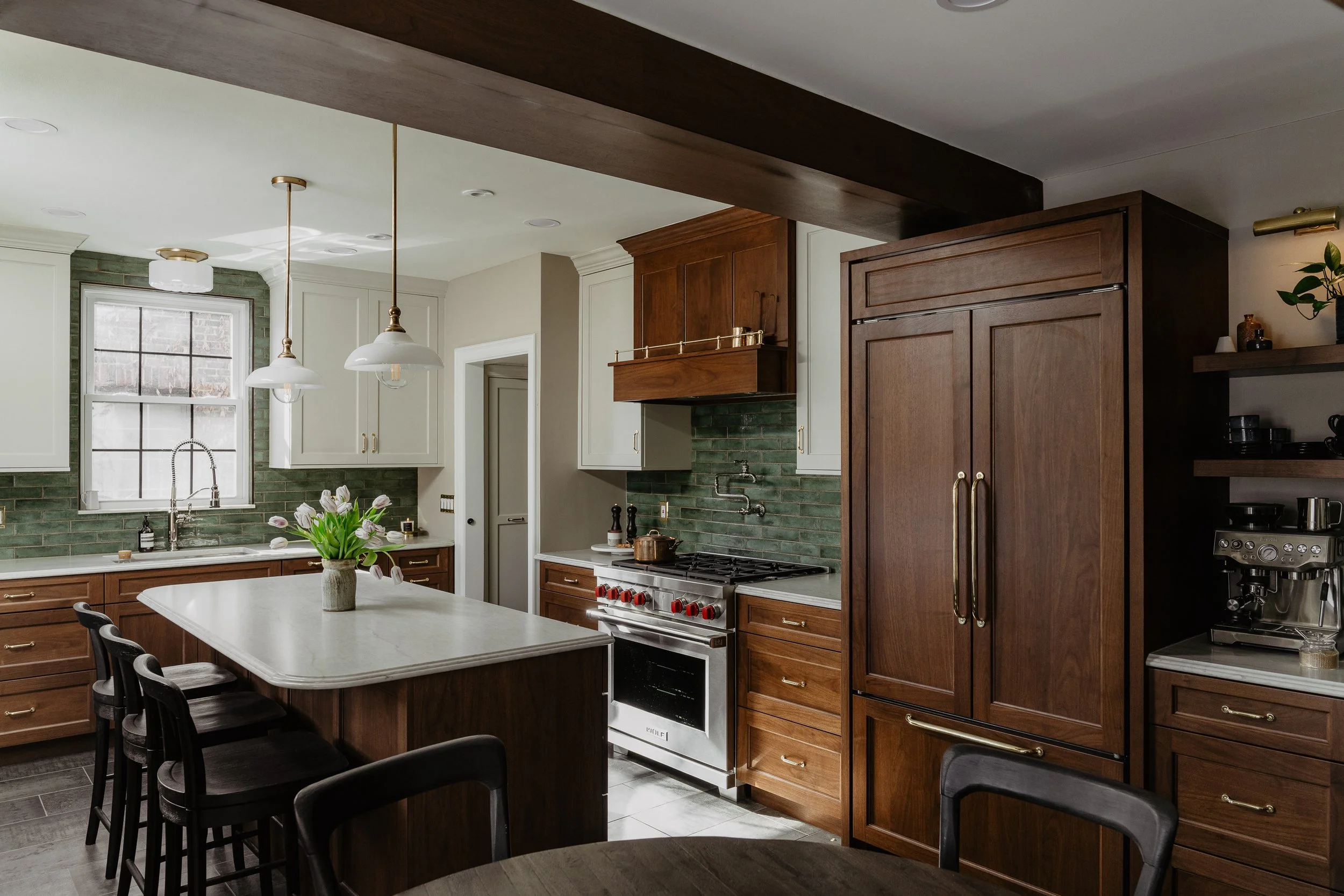 A timeless reimagining of a Detroit limestone Tudor, this kitchen blends rich character, seamless flow, and thoughtful modernization for everyday living.